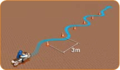 Bij de snelle slalom zijn zes pylonen opgesteld. Deze slalom neem je bij een snelheid van minstens dertig kilometer per uur met trekkende motor. Belangrijk is dat het vloeiend en gelijkmatig gebeurt en dat je vanuit de heupen stuurt.