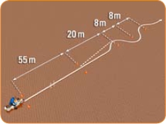 Met deze oefening laat je zien dat je een complete (denkbeeldige) acht kunt rijden in een rechthoekig kader. Je rijdt met trekkende motor en houdt daarbij een gelijkmatige snelheid aan. Je mag naast je voetrem eventueel ook een slippende koppeling gebruiken.